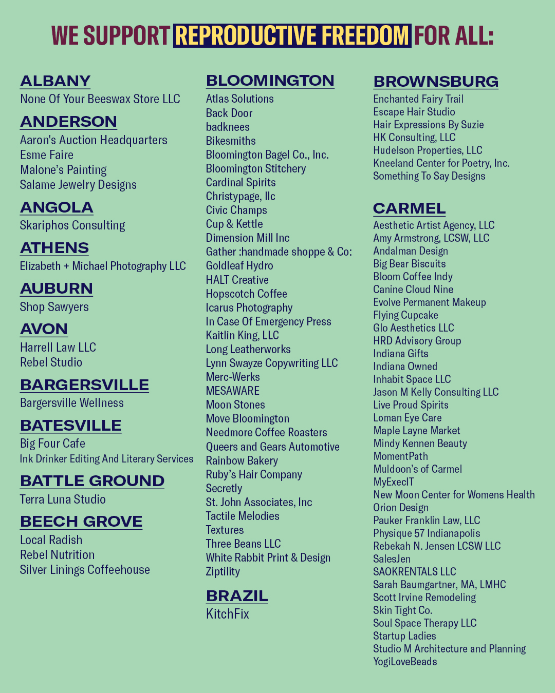 Aclu Of Indiana On Twitter Just Because Sb 1 Passed Does Not Mean That Businesses Are Going To Stay Quiet Our List Of Indiana Companies Taking A Stance In Support Of Reproductive